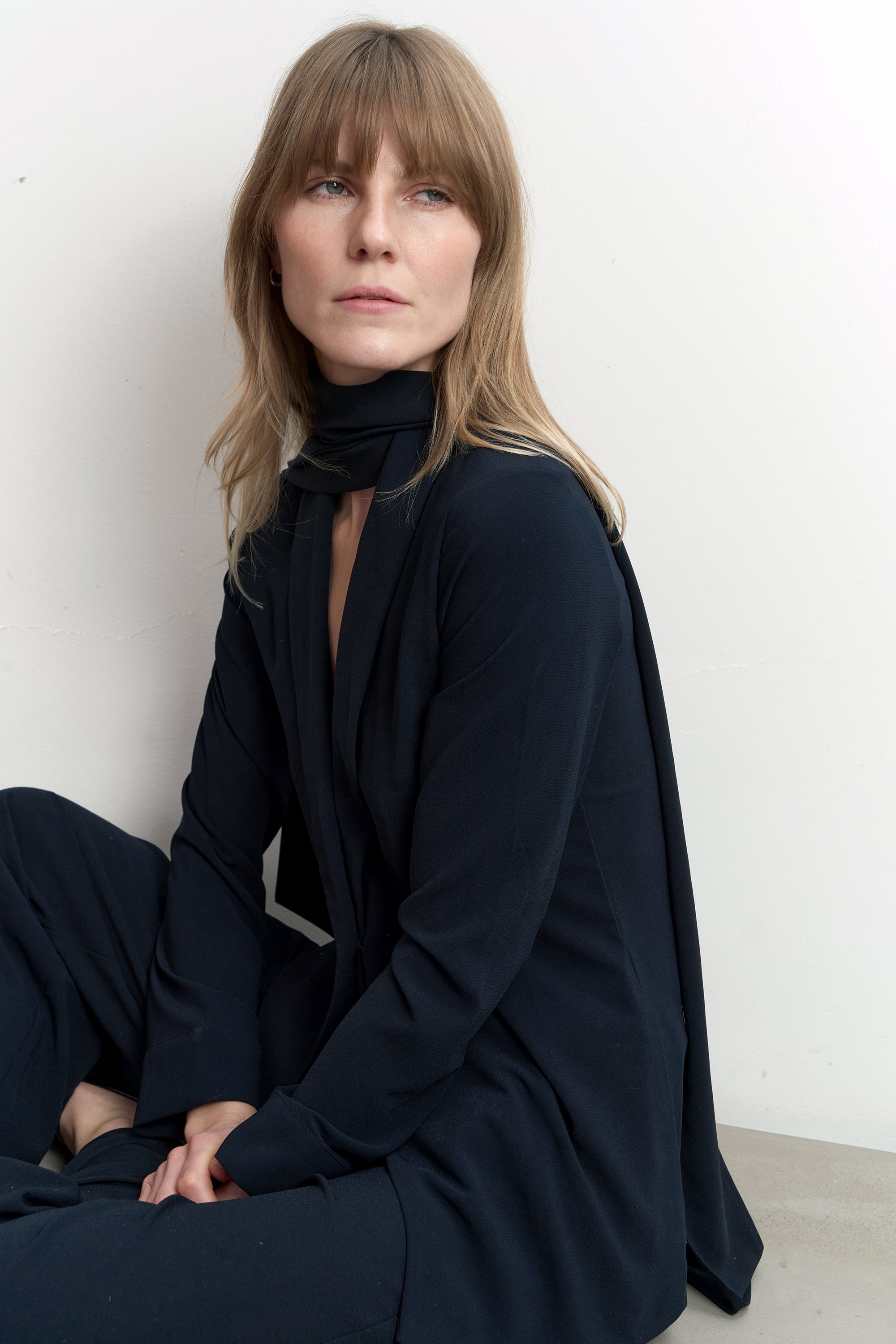 Every well-edited wardrobe needs a soft blazer, and this is the one that will stay in your wardrobe for many years to come. It’s made from a soft crepe and comes with an accompanying scarf/belt.