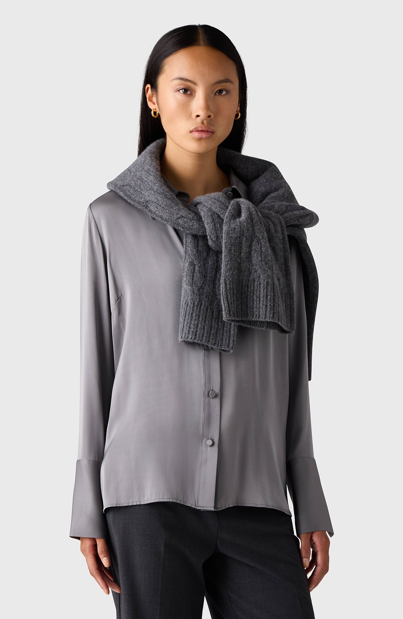 The Leonie Shirt has a slightly loose fit. Made in silk stretch, and designed with fabric-covered buttons. Wear with tailored trousers or denim to elevate your look.