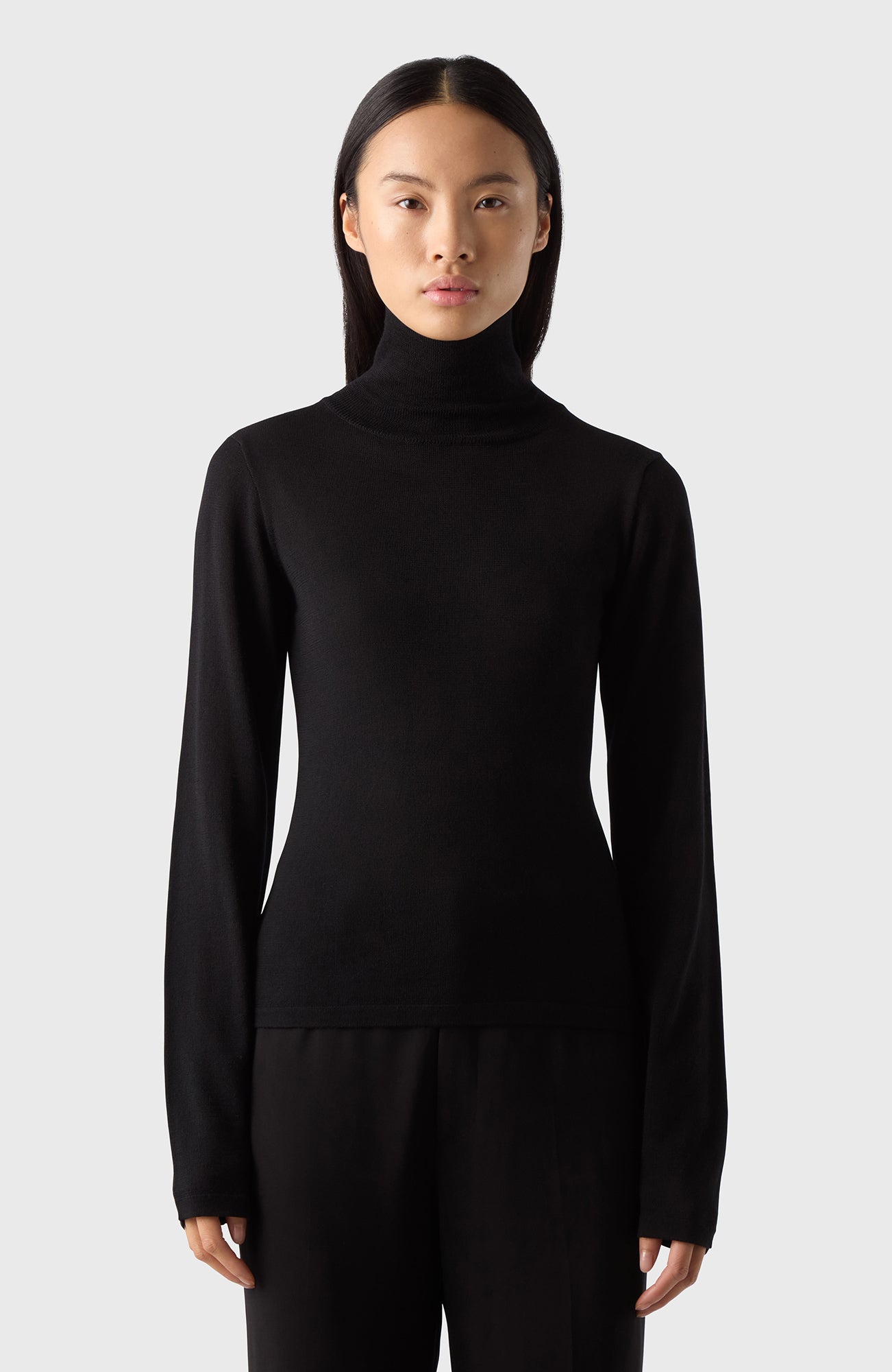 The Turtleneck comes in black and has a slim fit. It's crafted from 100% super soft merino wool, offering both warmth and comfort. Wear it with tailored trousers to dress up or denim to dress down.