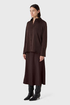 A fluid essential with quiet impact. The Ally Skirt falls to ankle length in satin stretch that flows gently around the body. The elastic waistband ensures comfort and versatility — easy to style with crisp shirts, soft knits or a matching top for a full look.