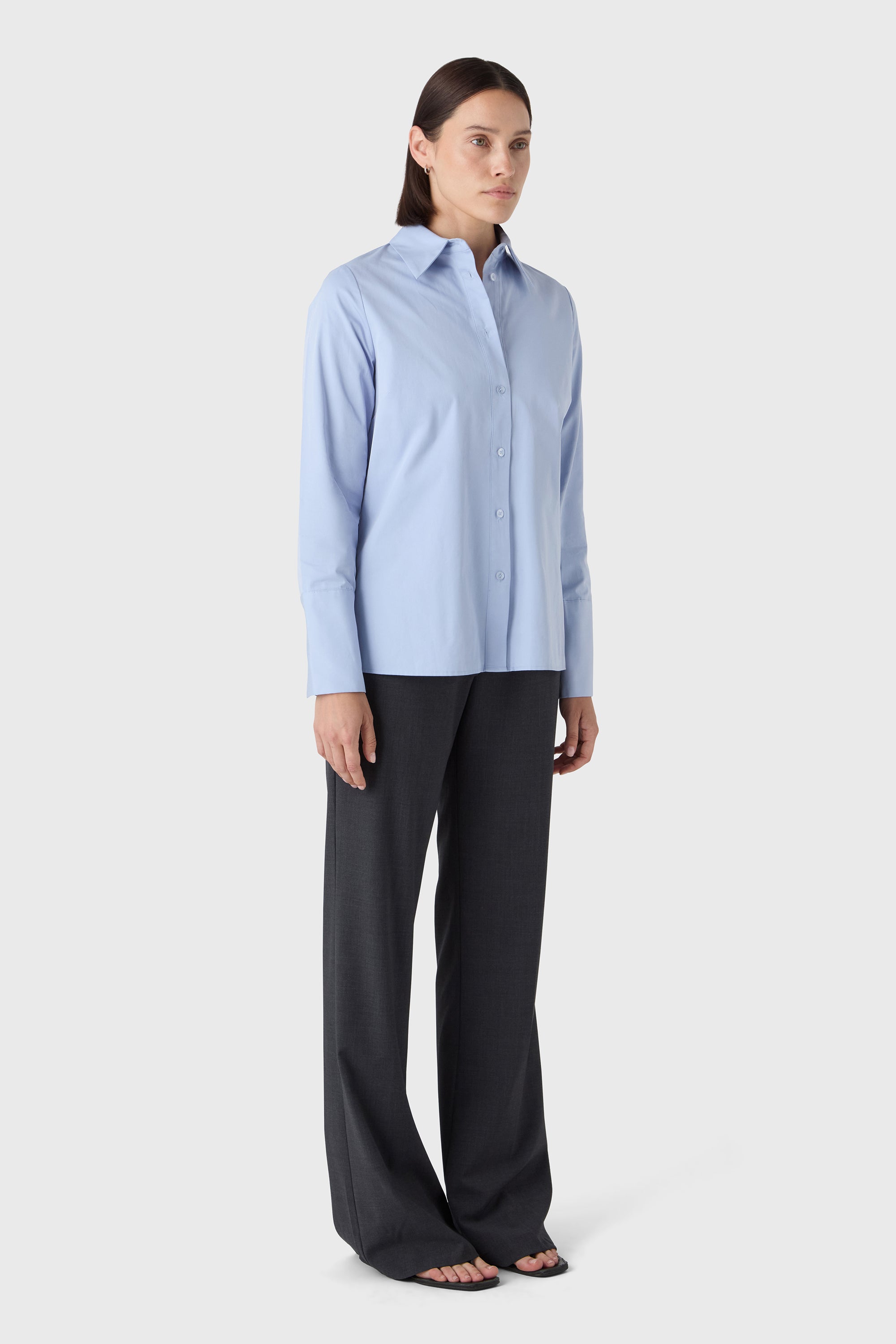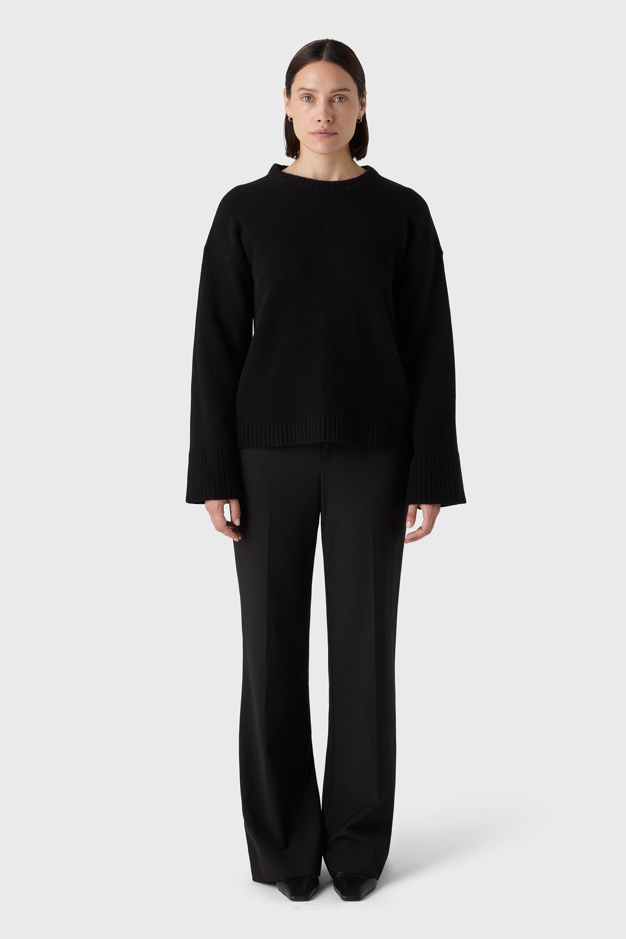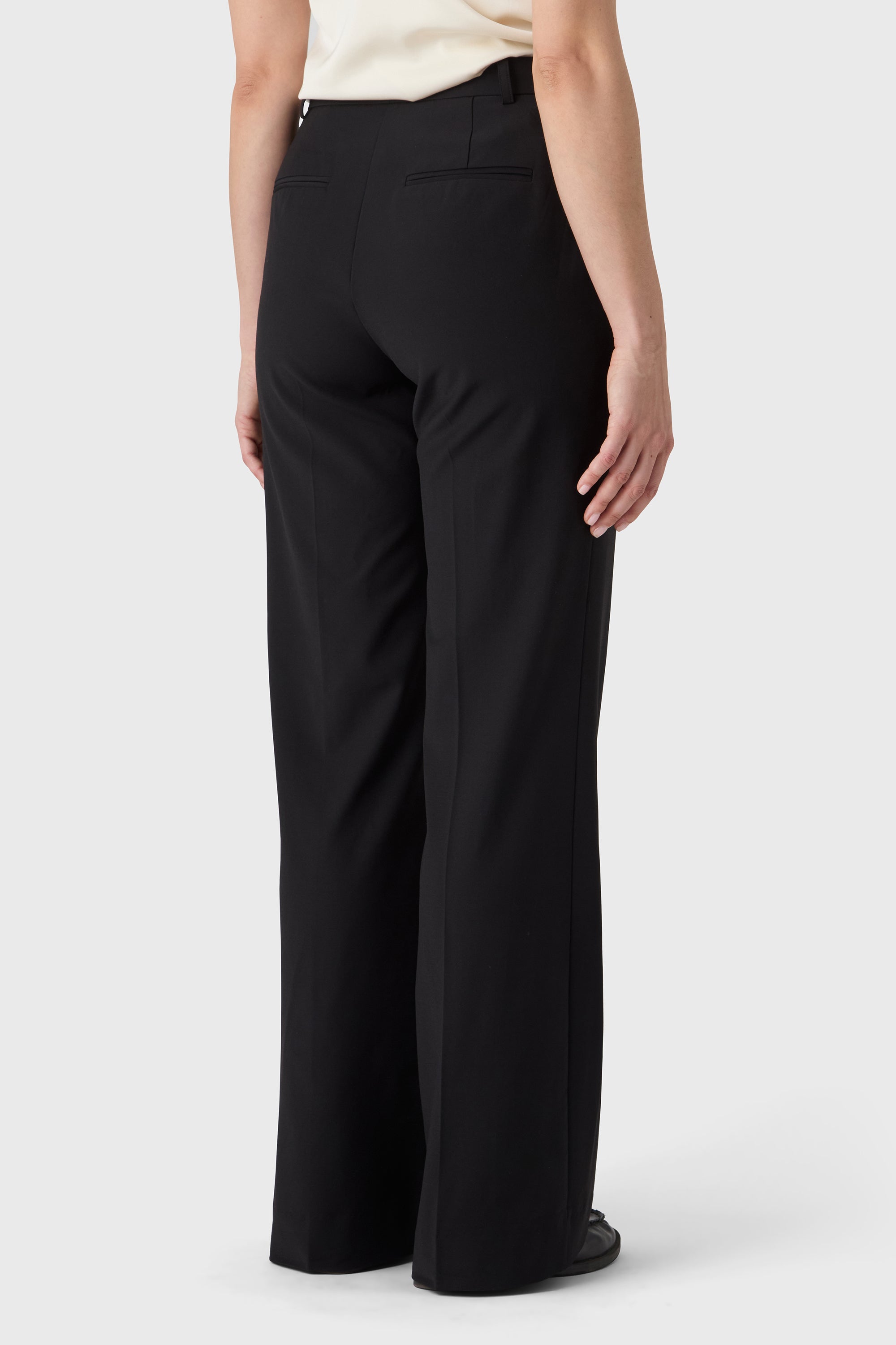 A modern take on tailoring. The Elle Trousers are cut from machine-washable wool stretch with a high waist, front zip and clean side pockets. The slightly flared leg creates a long, elegant silhouette — ideal with heels or a sharp flat.