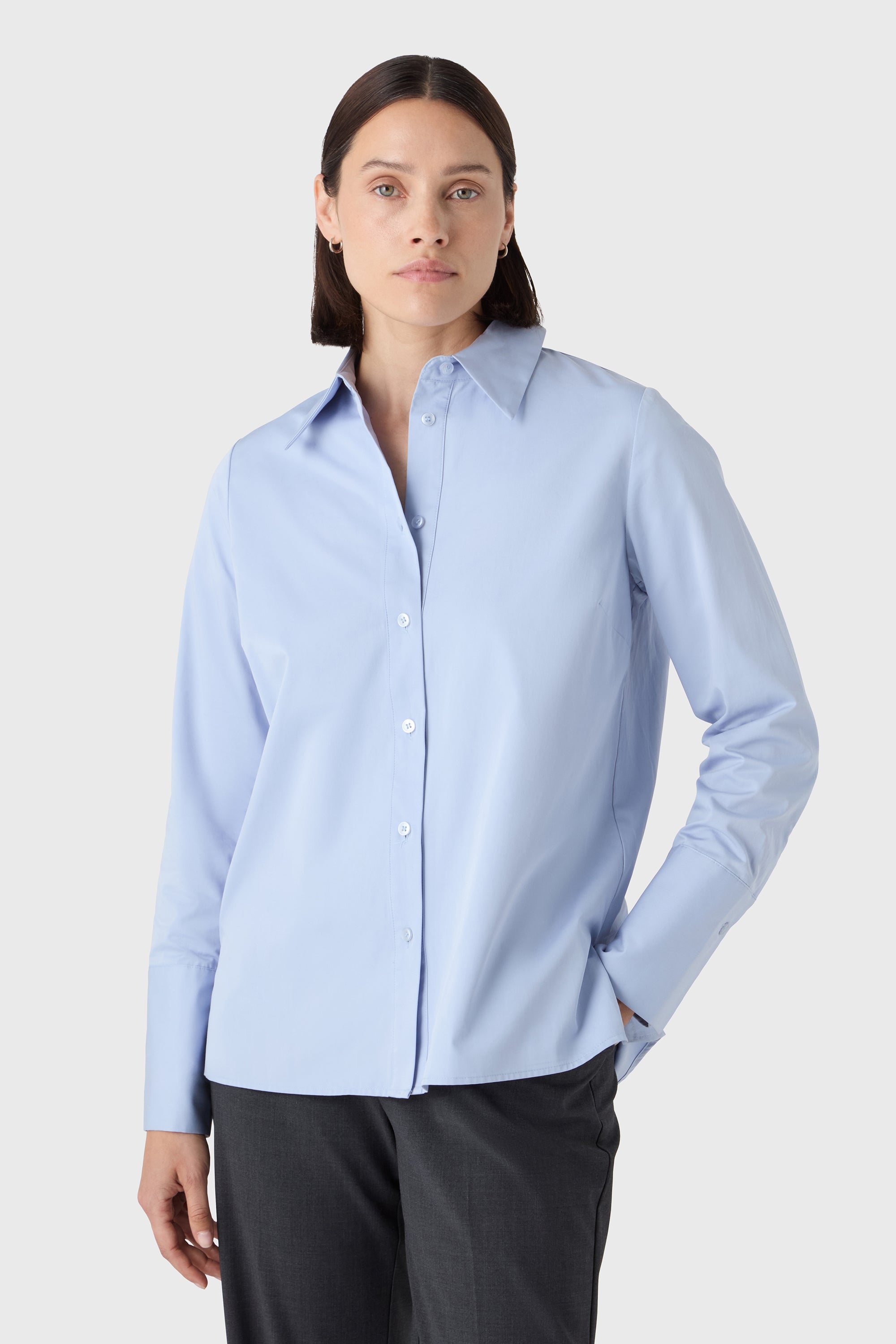 A crisp staple with character. The Oprah Shirt is tailored from cotton stretch with a pointed collar, wide cuffs and a relaxed cut. A refined classic that works equally well under a blazer or worn on its own.