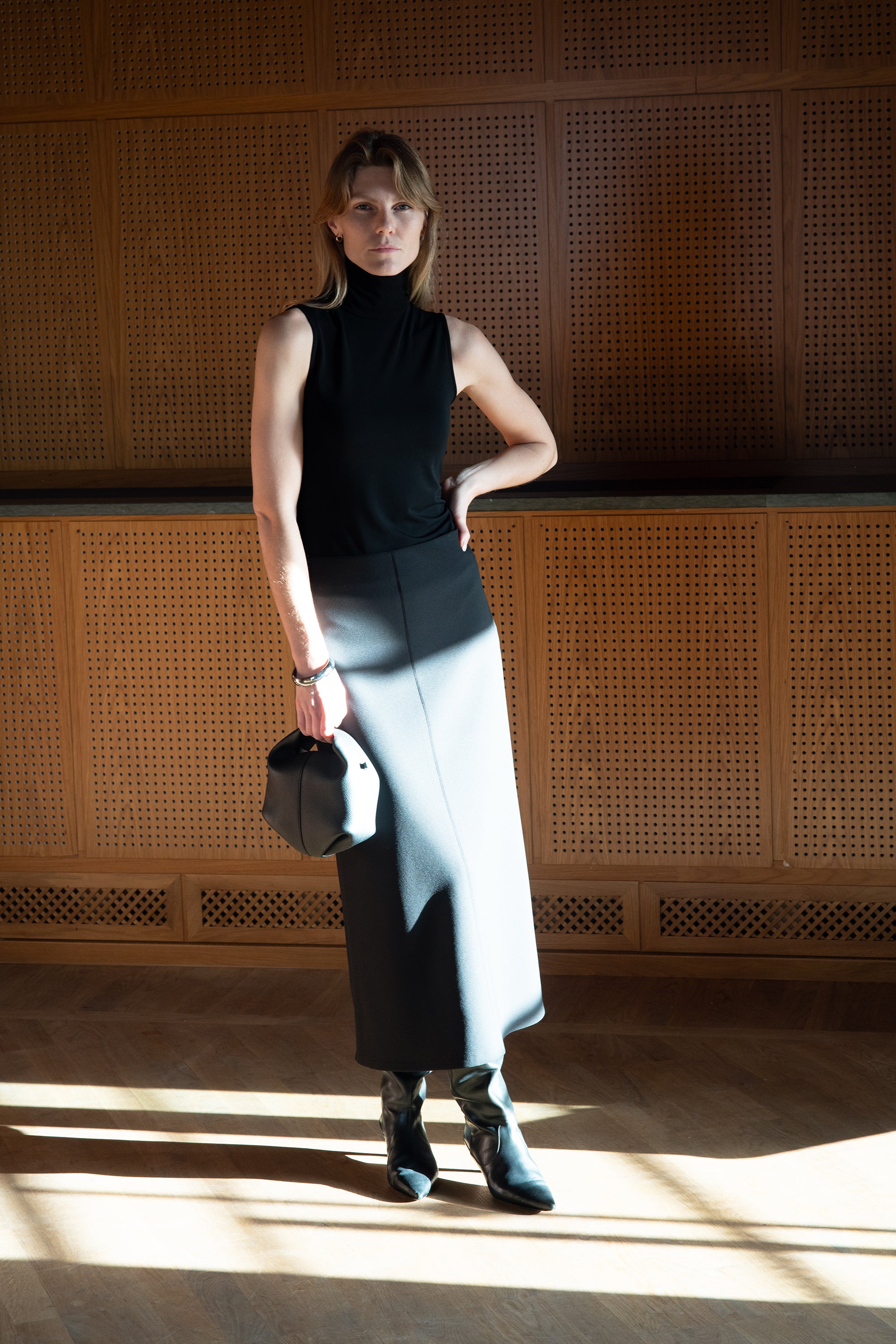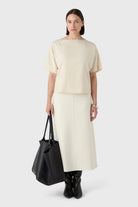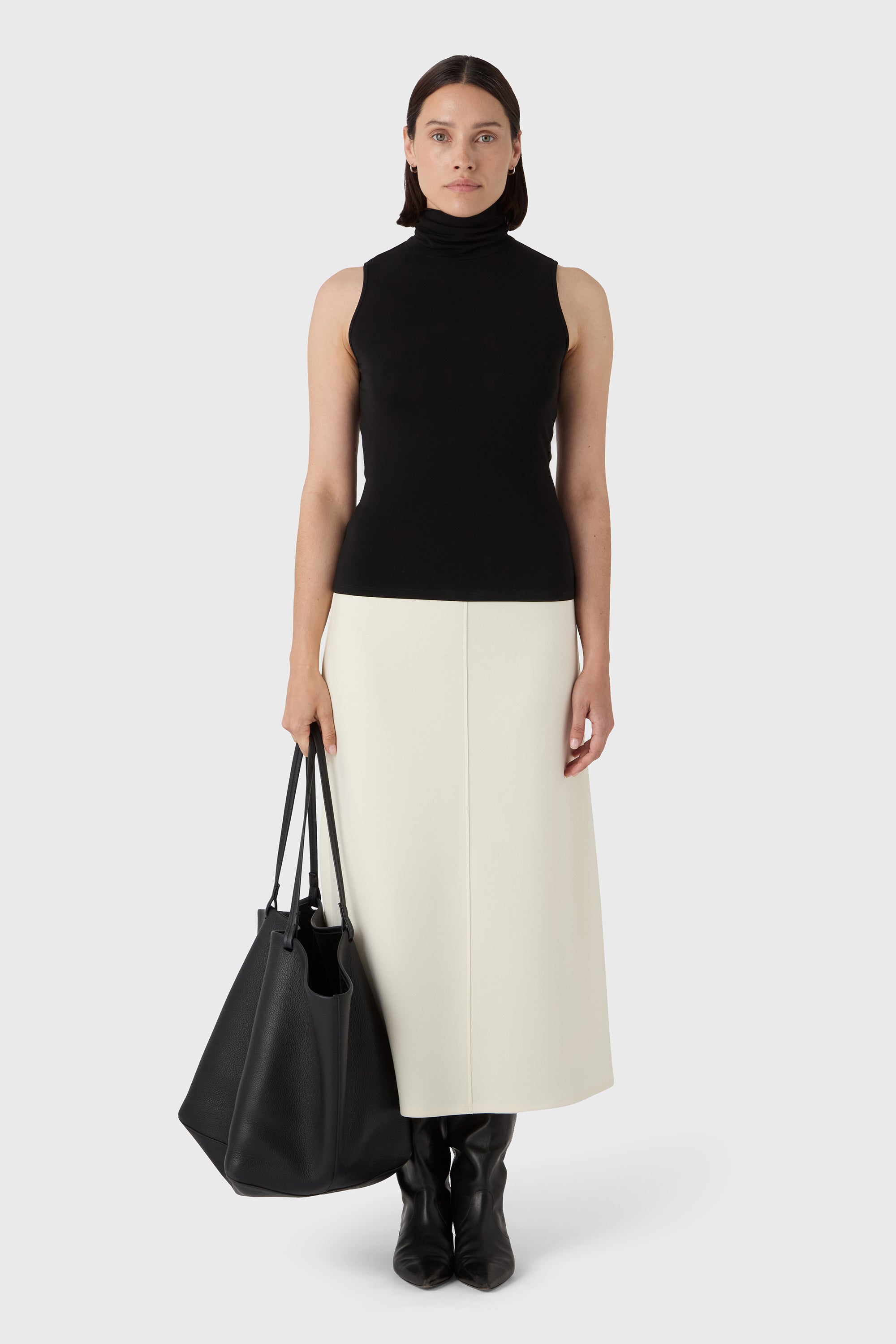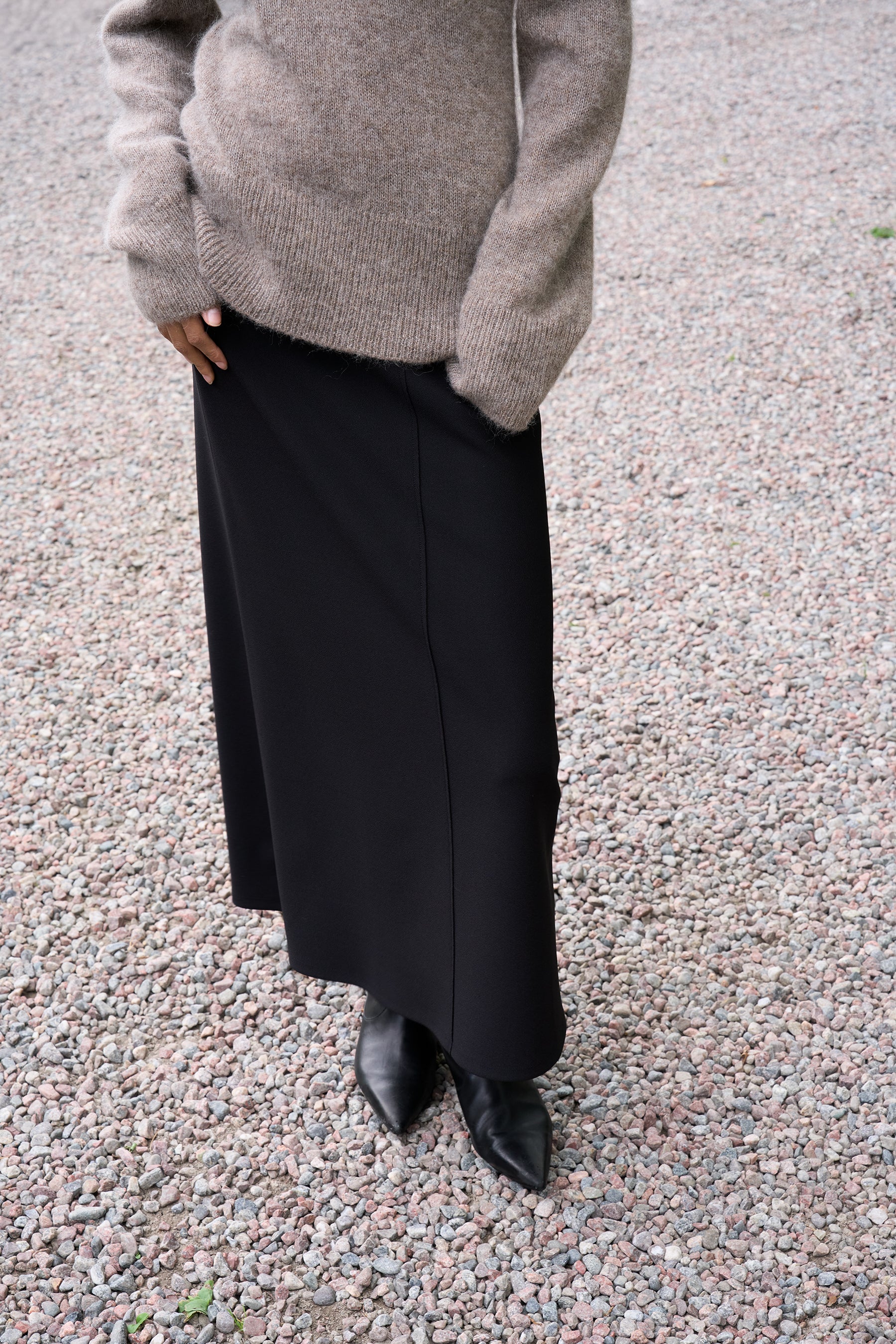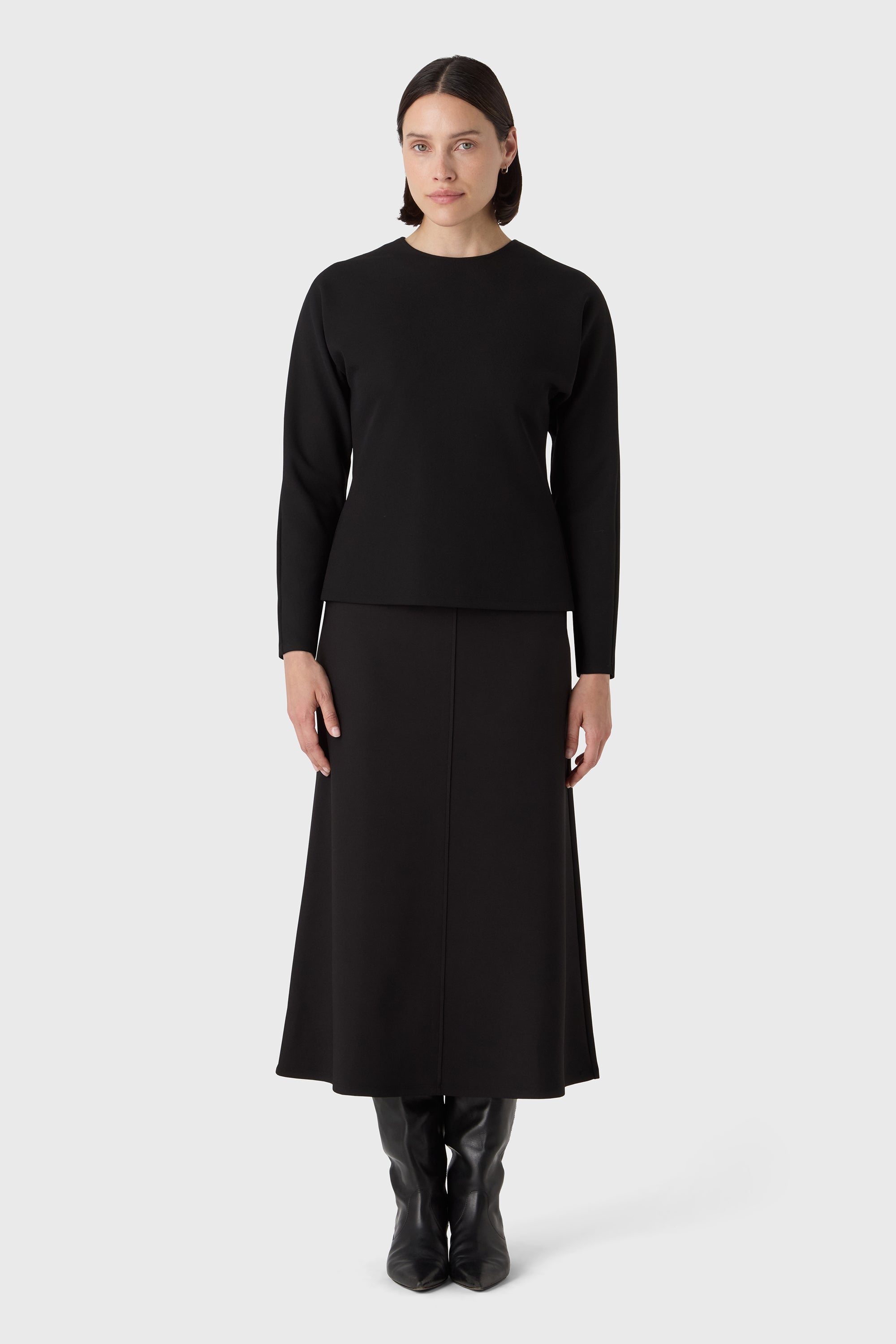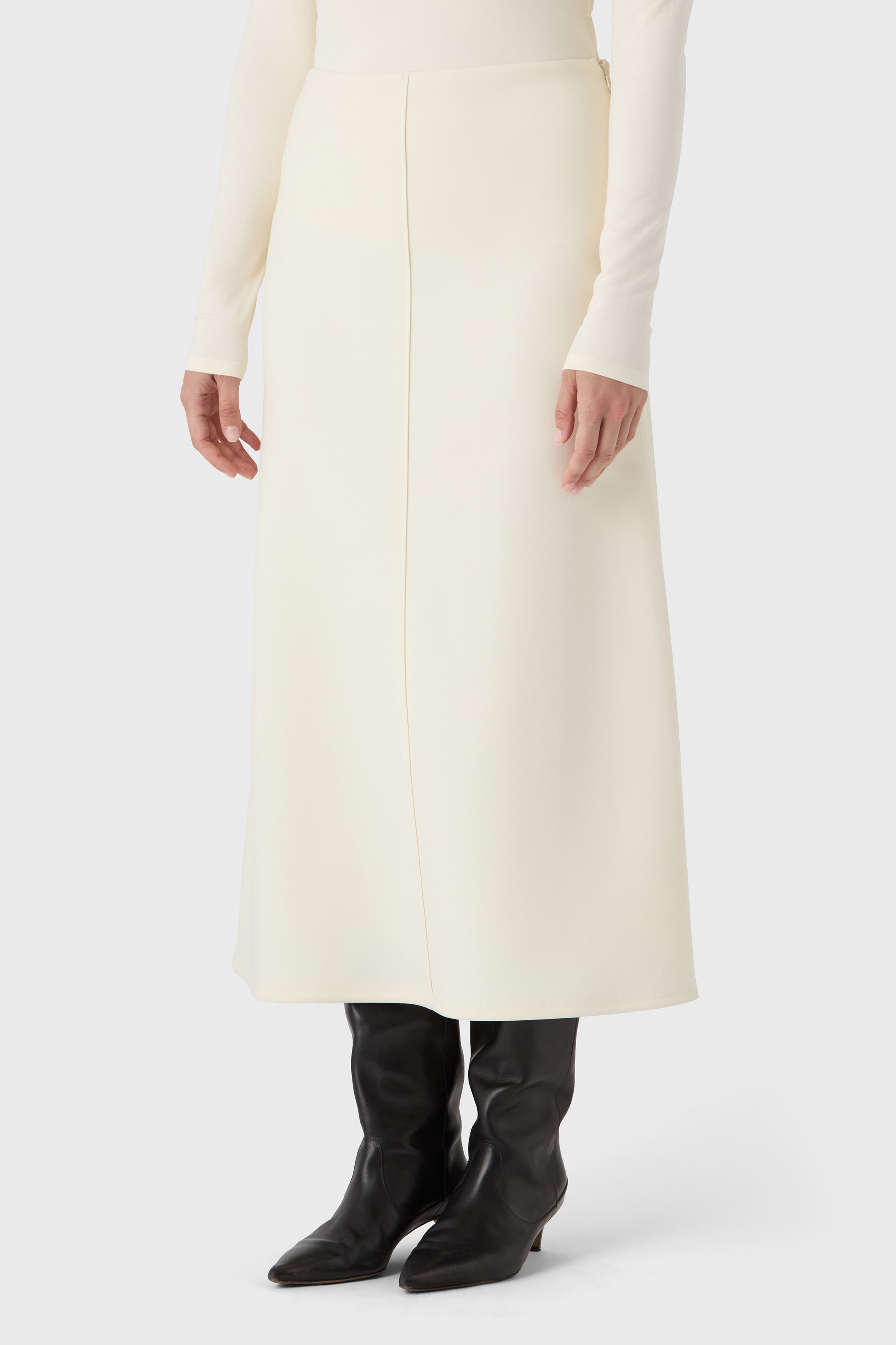 Understated and refined. The Rose Skirt is cut from superstretch jersey crepe for a smooth silhouette that moves with ease. Designed to sit at the waist and fall just below the calf, it pairs beautifully with the Pia Top for a modern set — or stands strong on its own.
