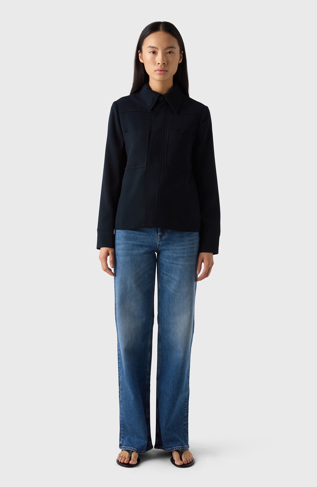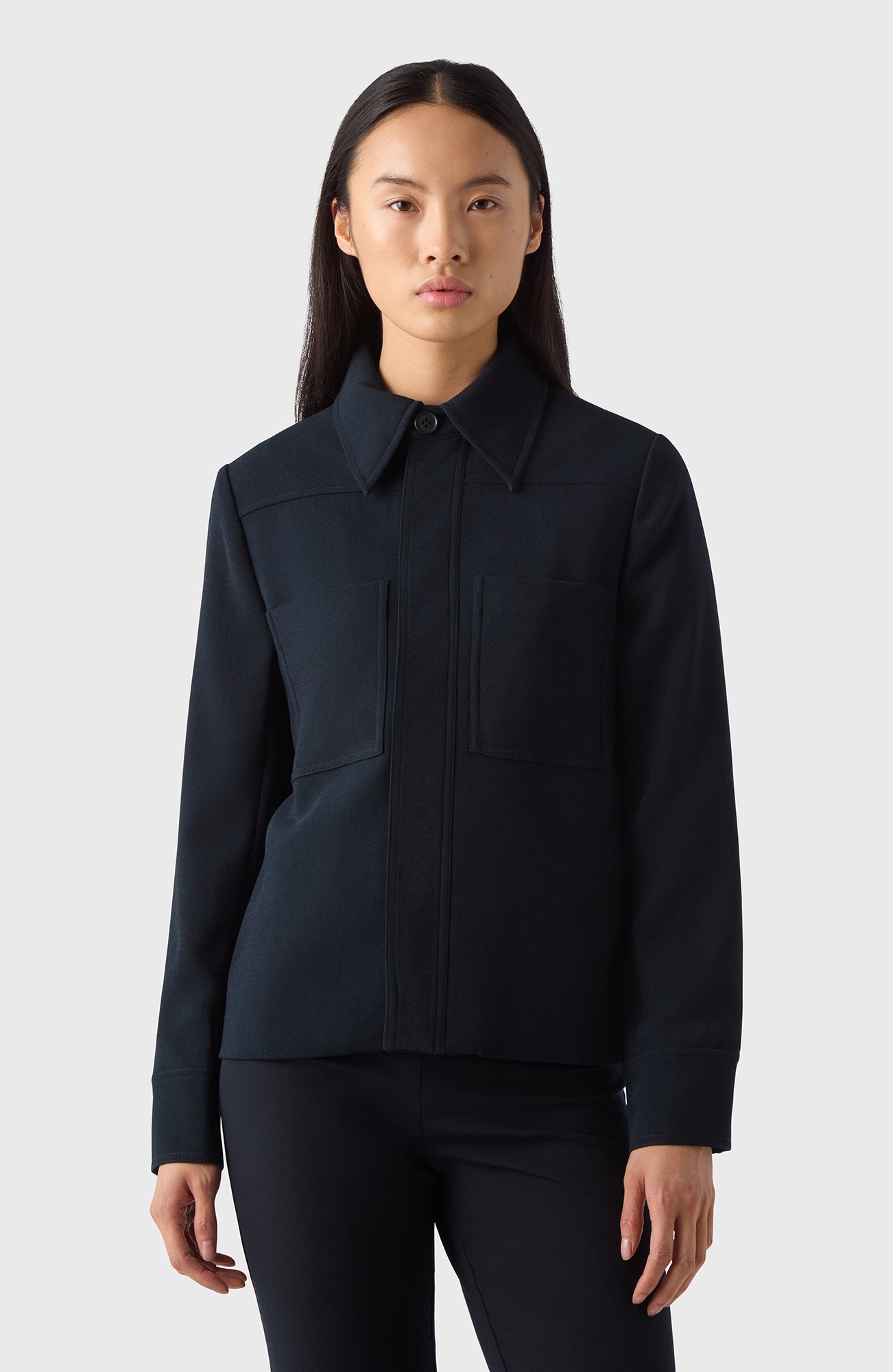 A polished, elegant feel. The straight cut and the big collar makes The Marion Jacket suitable for any occasion. Crease-resistant, perfect for travel or the office.