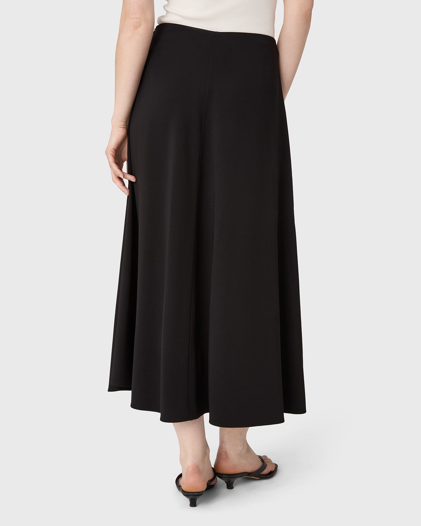 The Rhonda Skirt is your go-to for polished comfort. Crafted from our beloved stretch crepe, this ankle-length silhouette drapes beautifully, enhanced by a chic front seam for a streamlined finish. Crease-resistant and machine washable — perfect for busy days and spontaneous plans.