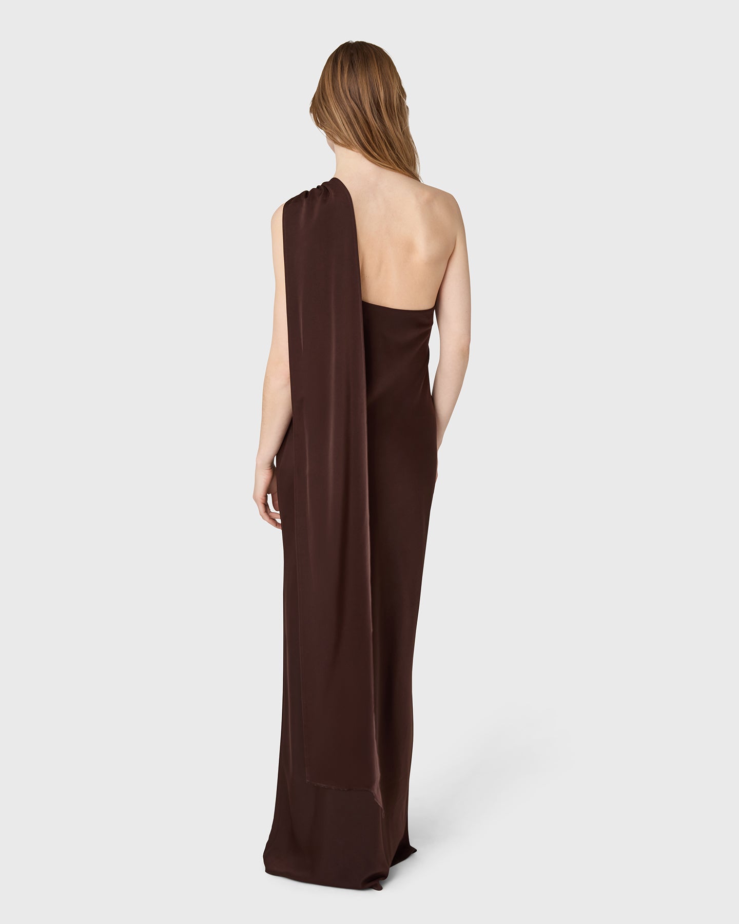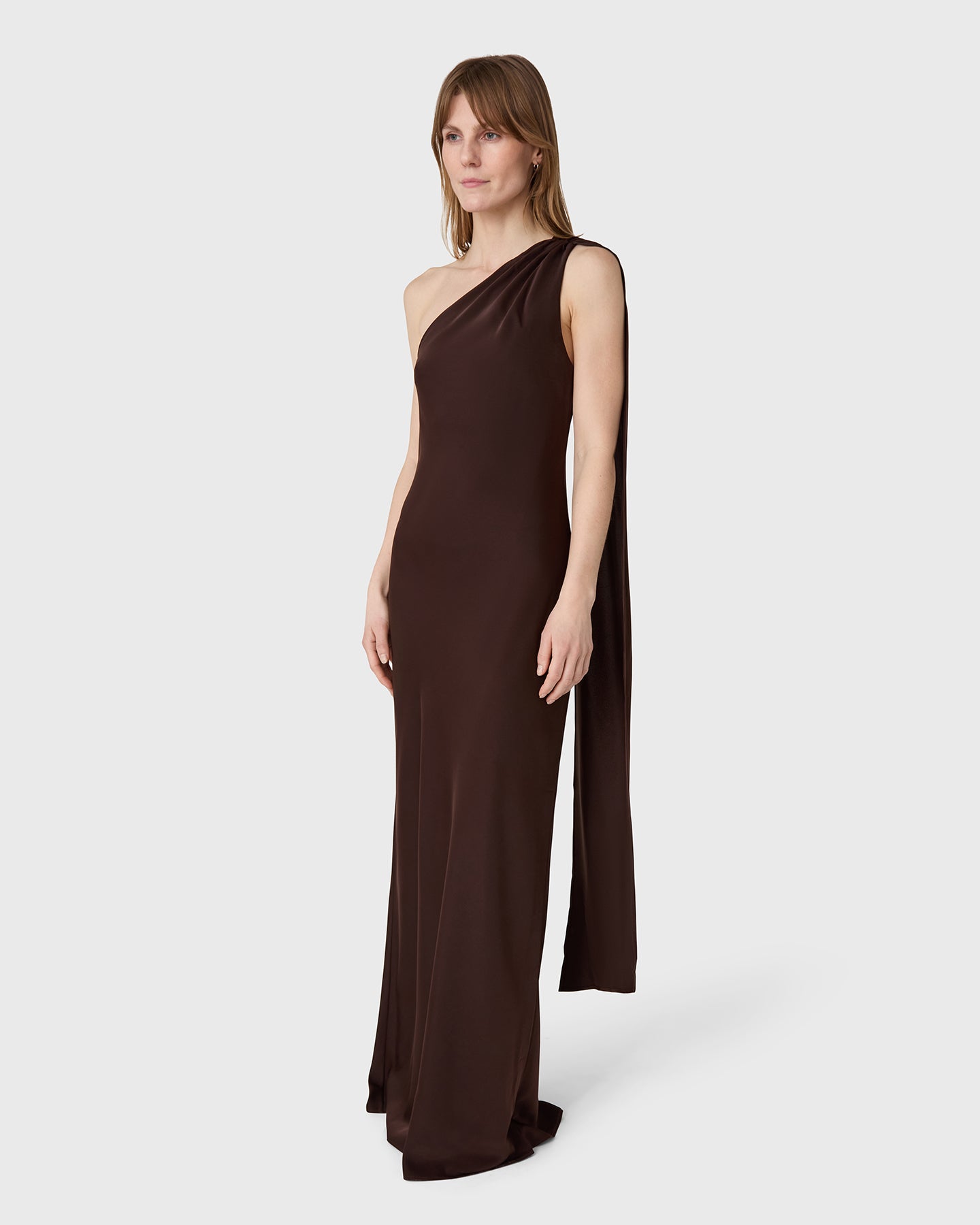 The Ilse Satin Dress is a long dress in satin stretch with a scarf detail and a timeless silhouette. An elegant choice for weddings and refined occasions.