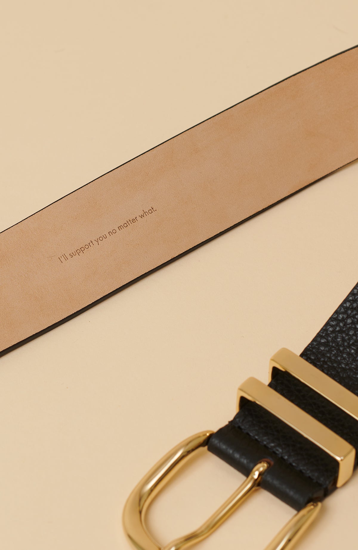 The loops are decorated with M R to remind you that you are an important part of our community of inspiring women on Marville Road, who all strengthen and inspire each other forward in this life. The inside of the belt is further decorated with the note ”I’ll support you no matter what” – a reminder that we’re always here for you. This also makes the belt a perfect gift for the woman you care about.