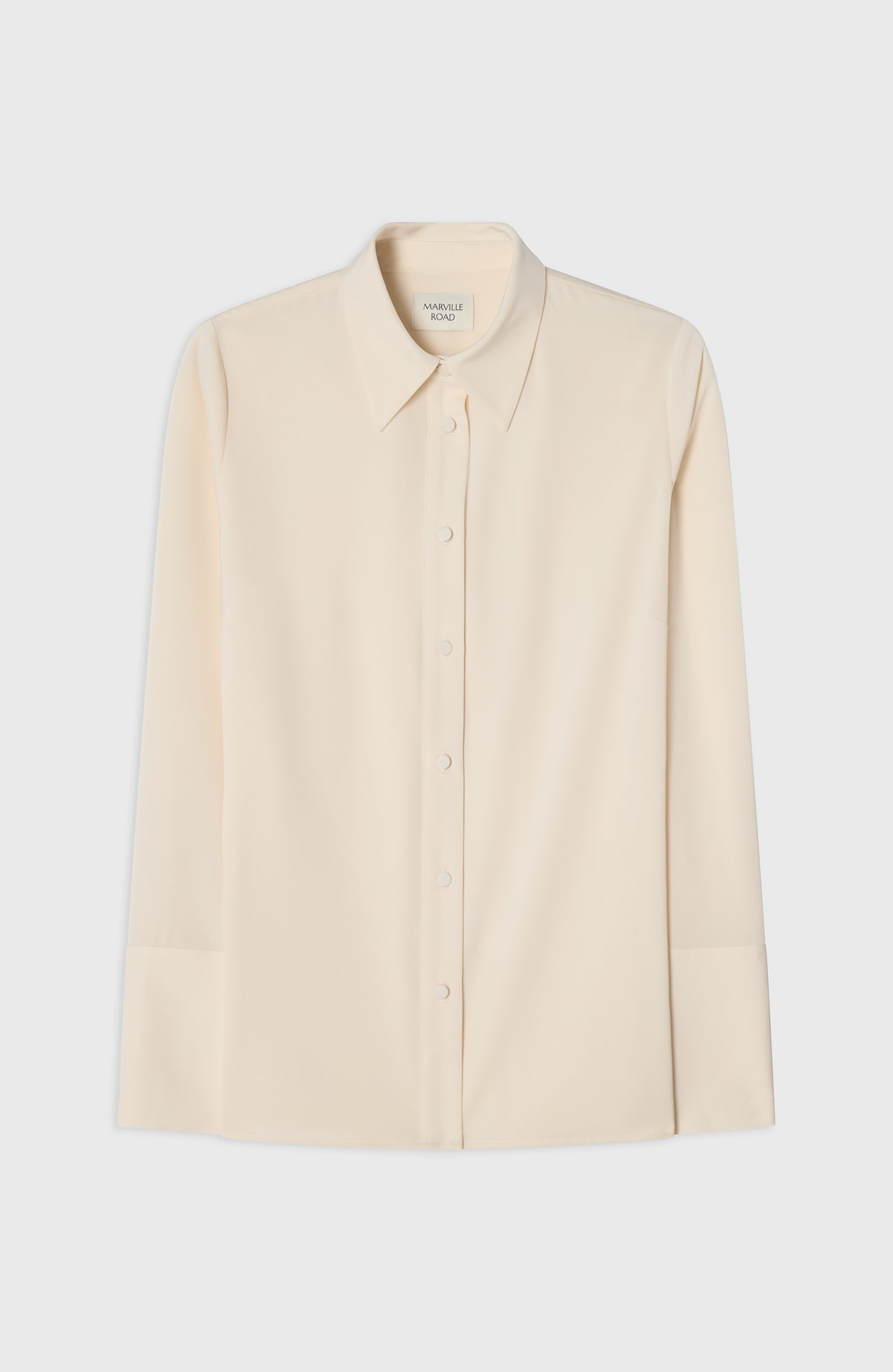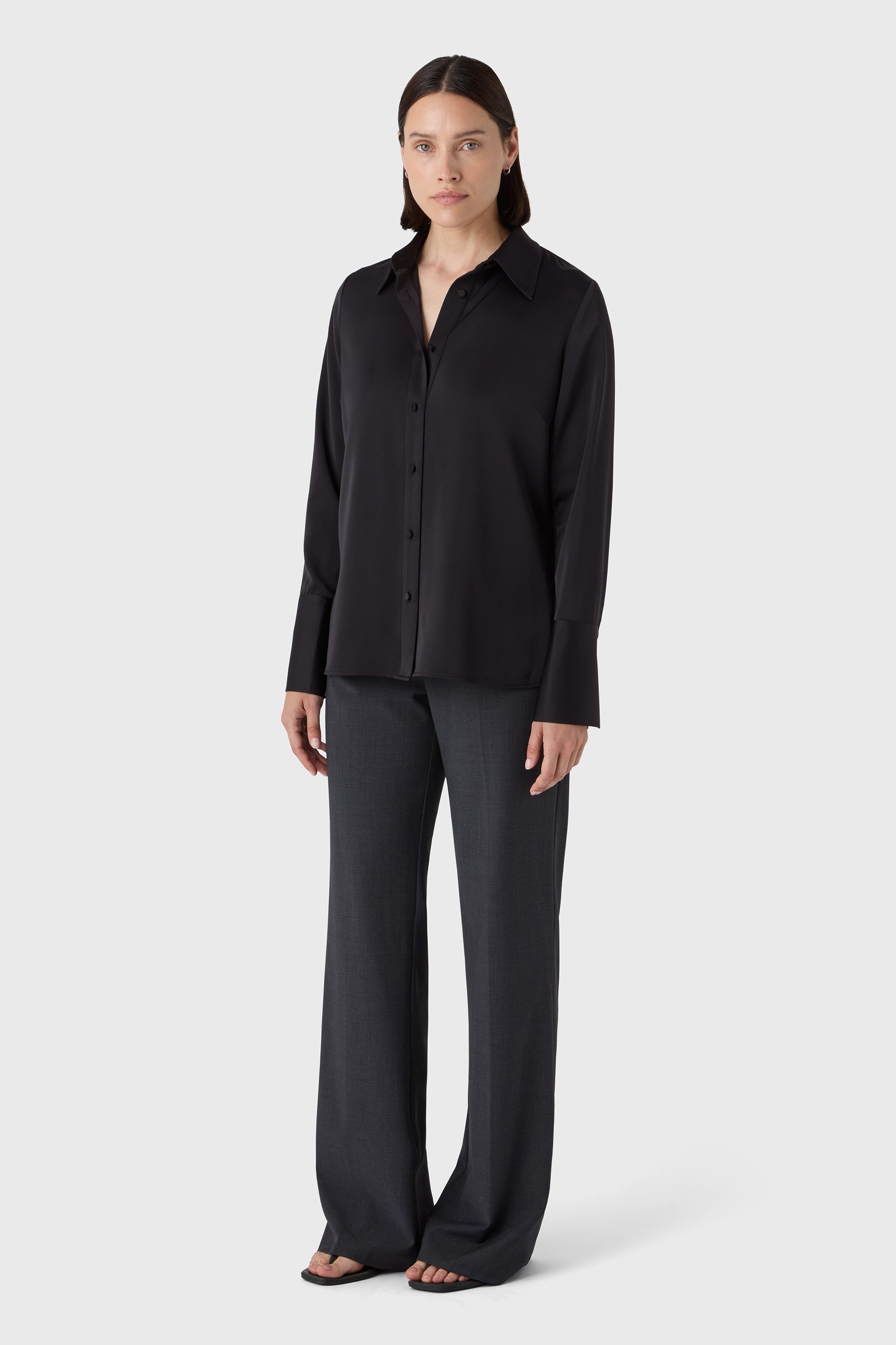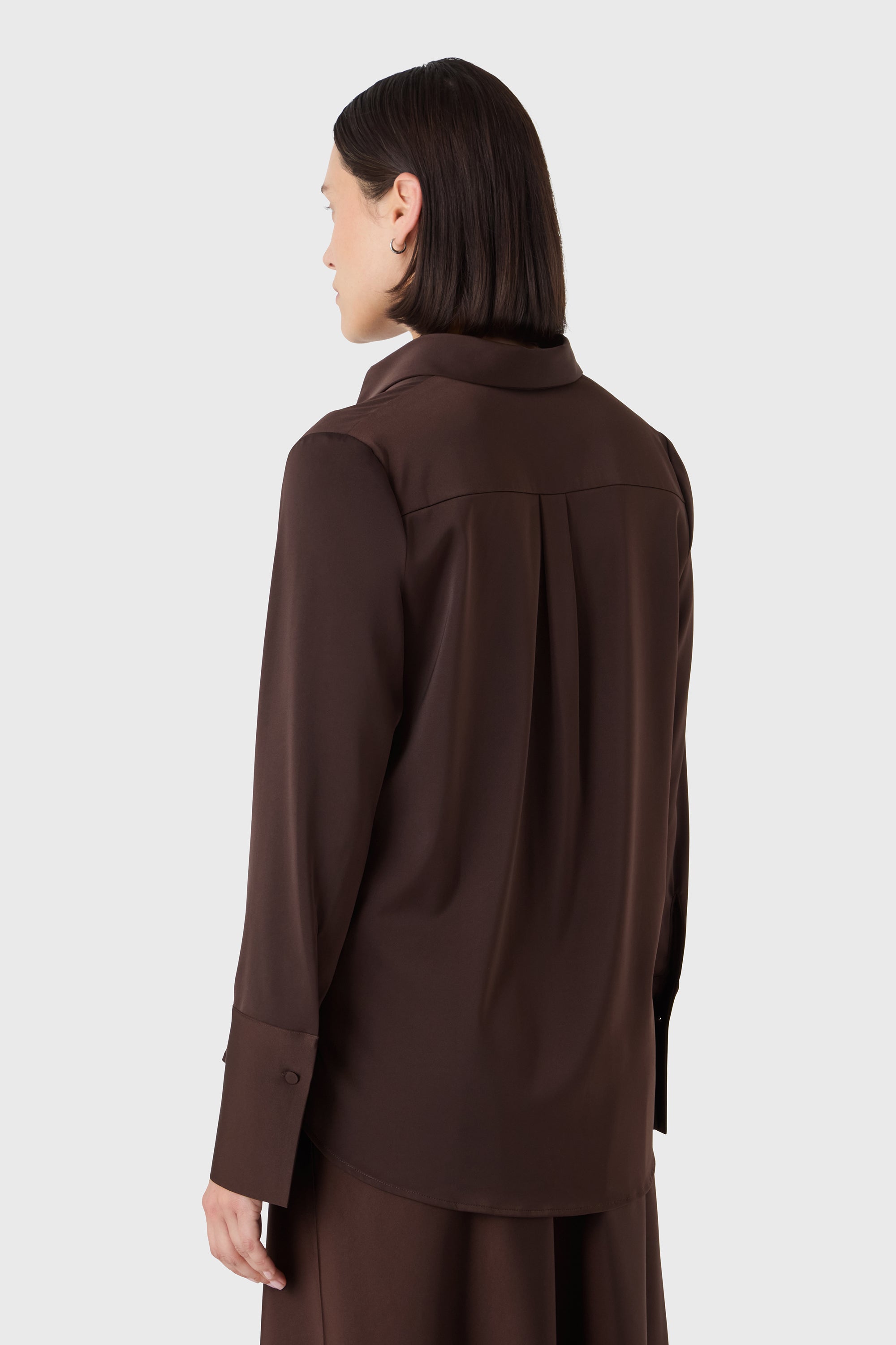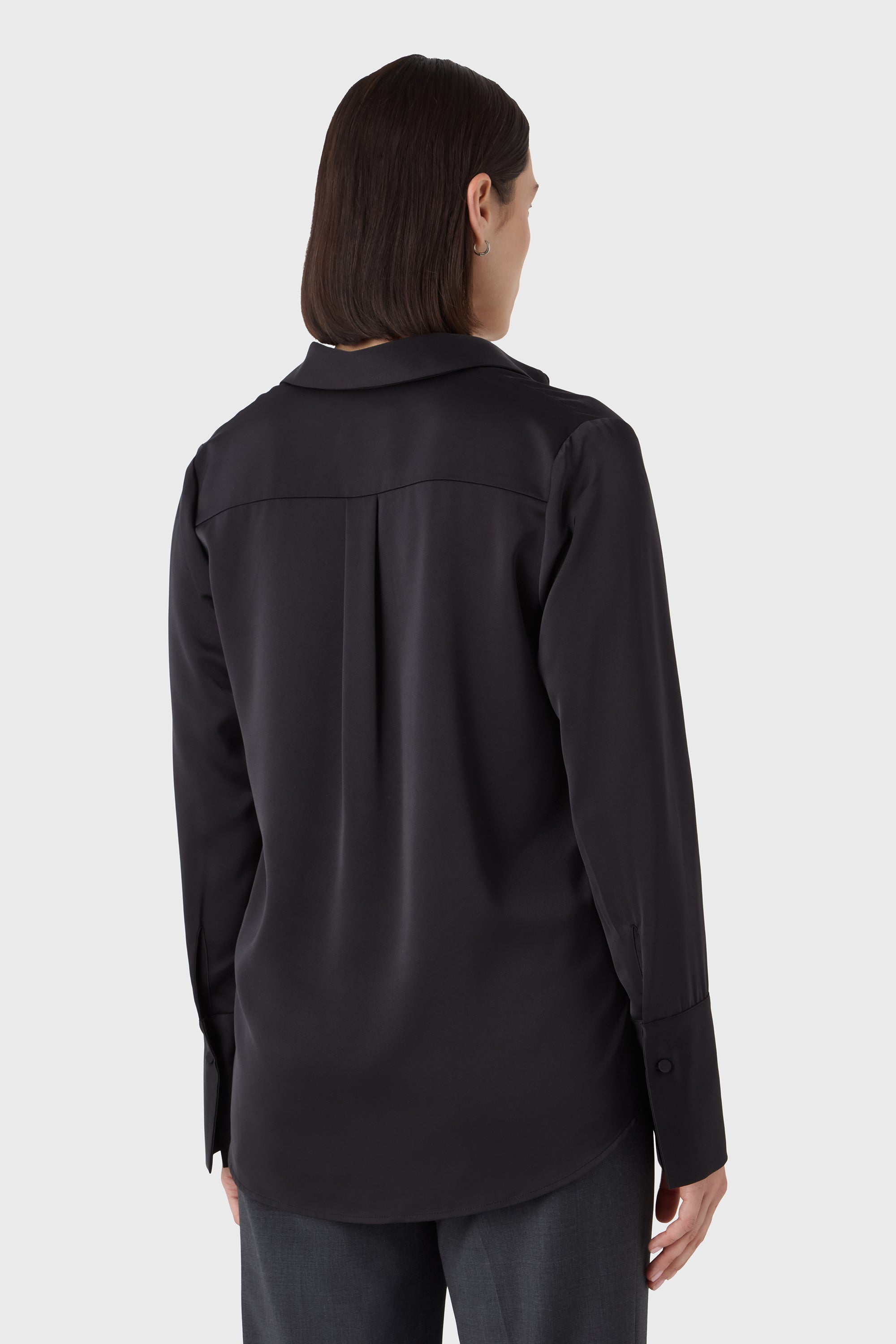 Soft structure with a touch of shine. The Leonie Blouse is a feminine take on the classic shirt — designed in satin stretch with long sleeves, decorative cuffs and fabric-covered buttons. A polished piece that pairs effortlessly with tailored trousers or soft knits.