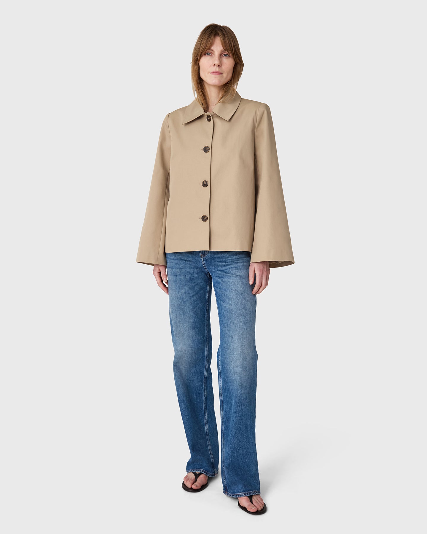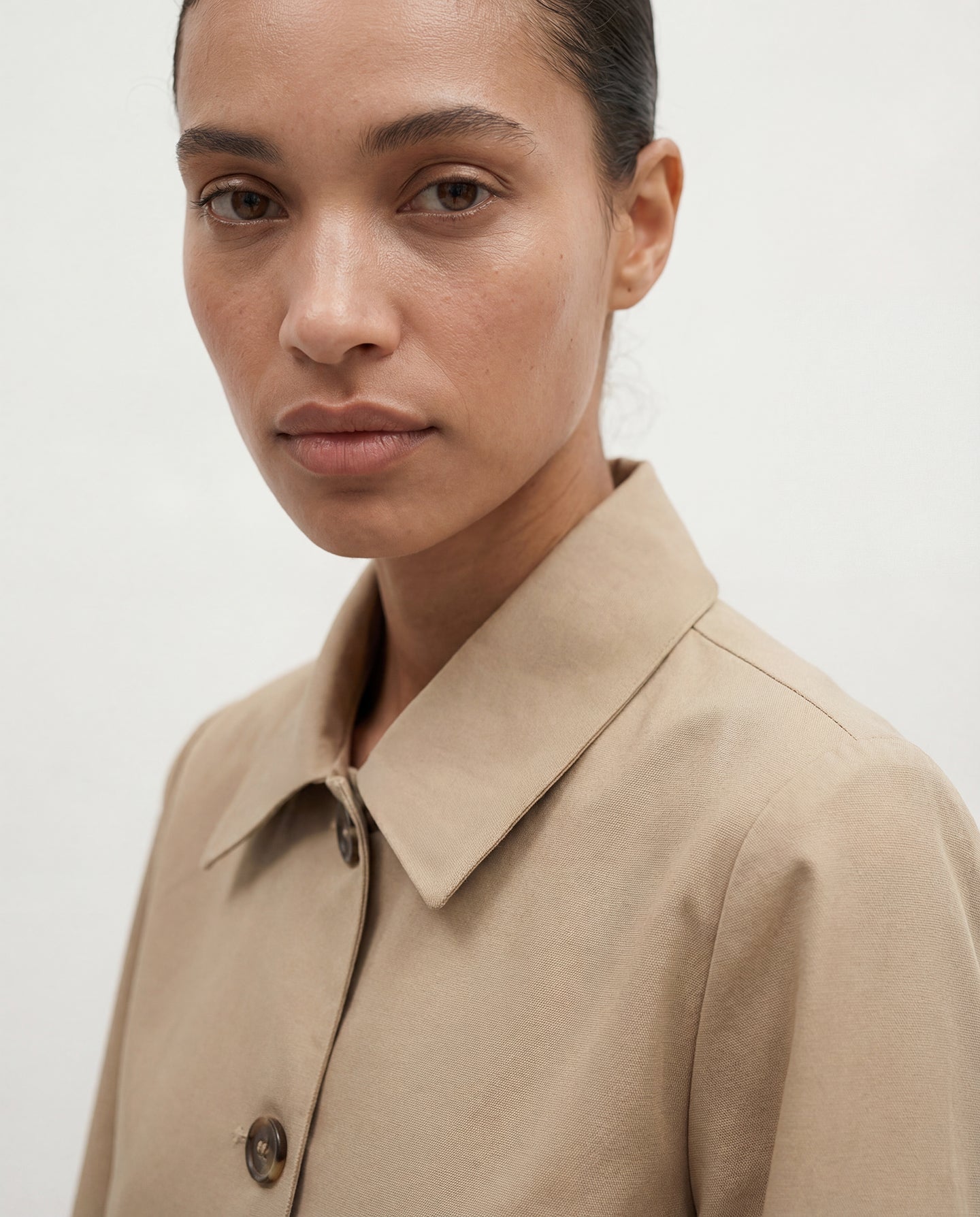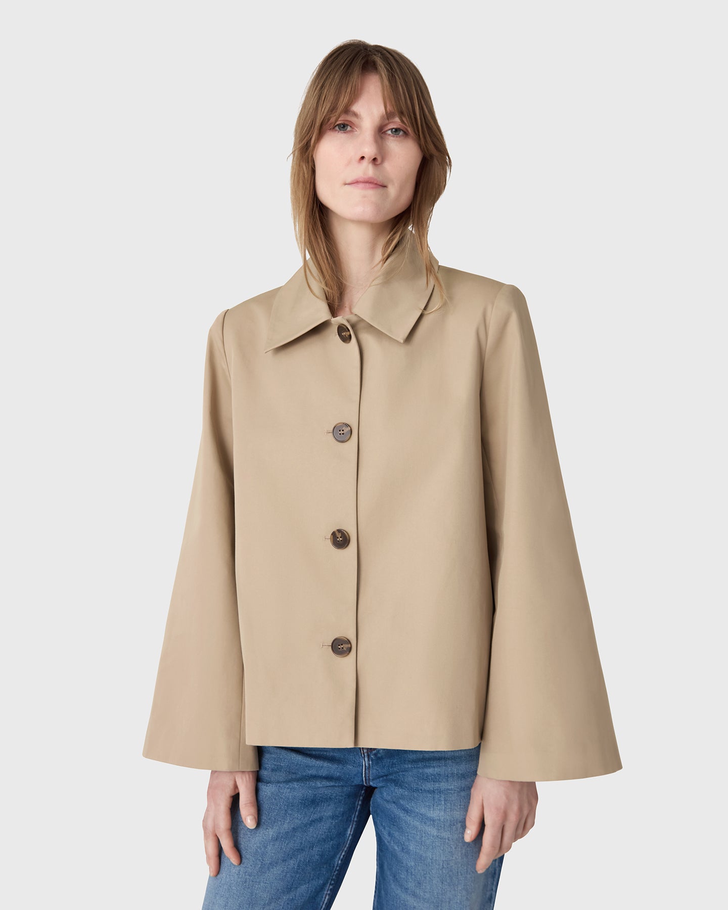The Coline Trench Jacket är en sofistikerad trench som definieras av sin krage, vida ärmar och rena silhuett. En modern tolkning av ett tidlöst ytterplagg, designad för en självklar och elegant vardag.
